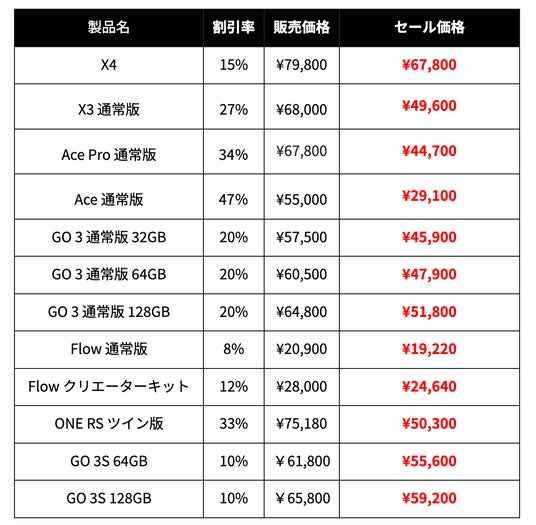 セール期間中は、大人気360度アクションカメラInsta360 X4が15%、Insta360 Ace Proが最大34%割引、世界最小アクションカメラInsta360 GO 3Sも10%割引で販売し、大変お買い求めやすい価格となっています。ウィンターシーズン、クリスマスに備え、今年の思い出を記録する準備をしましょう。