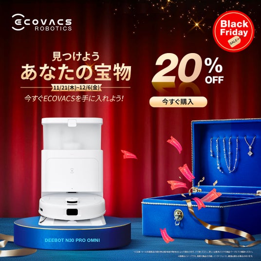 今年のエコバックスブラックフライデーは「見つけよう、あなたの宝物」をテーマに、一年頑張った自分へのご褒美や、日頃お世話になっている方々、家族へのギフトにぴったりなロボット掃除機を特別価格でご提供します。期間中は、人気のロボット掃除機が最大47%OFFとなる特別セールを実施します。ぜひ「宝探しの旅」をお楽しみください。