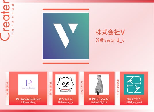 株式会社V(本社:東京都品川区、代表取締役兼CEO:藤原光汰、以下 V)は、大丸松坂屋百貨店が4週連続発売を発表したオリジナル3Dアバター向けクリエイターコラボ衣装の企画・制作を行ったことをお知らせいたします。本件にて対応した衣装サポートは9種目となります。