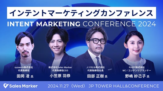 国内初※2「顧客起点」でおこなう新時代の営業手法「インテントセールス」を実現する『Sales Marker(セールスマーカー)』を開発・提供する株式会社Sales Marker(本社:東京都港区、代表取締役 CEO:小笠原 羽恭、以下:当社)は、2024年11月27日(水)、世界初となる「インテントマーケティングカンファレンス」を開催いたします。本カンファレンスでは、業界を牽引するリーダーや有識者とともにインテントマーケティングの可能性を探りながら、顧客起点でのマーケティングをいかに実現していくかについて議論を深めます。