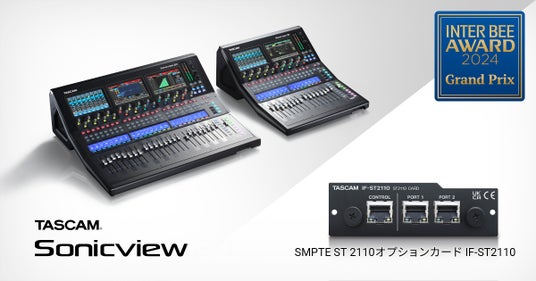 TASCAM(タスカム)は、『Inter BEE 2024』で実施された「INTER BEE AWARD」プロオーディオ部門において、SMPTE ST 2110に対応する小型音声卓『TASCAM Sonicviewシリーズ』およびオプションカード『IF-ST2110』をエントリーし、グランプリを受賞しました。