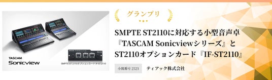 『INTER BEE AWARD プロオーディオ部門』で小型音声卓『TASCAM Sonicview』およびオプションカード『IF-ST2110』がグランプリ受賞