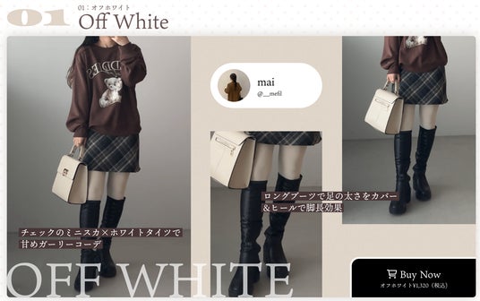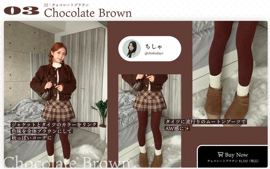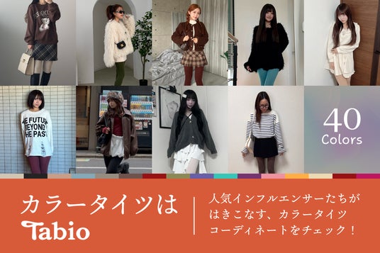 靴下専門店展開のTabio、40色のカラータイツコーデ集を公開。40名以上のインフルエンサーがコーデを提案。