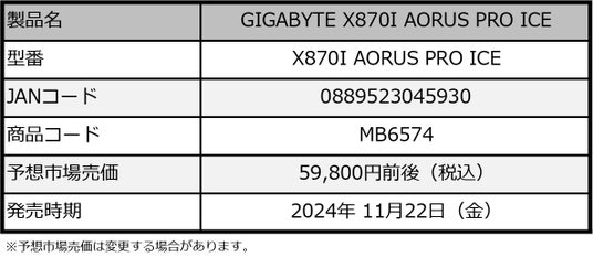 AMD X870チップセットを搭載したAORUS シリーズの Mini-ITX マザーボード「X870I AORUS PRO ICE」を2024年11月22日(金)に発売いたします。