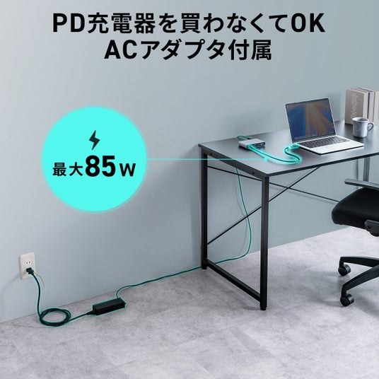 USB PD充電(85W)に対応し、本製品から映像出力、データ通信を行いながら同時にノートパソコンへ給電を行うことができます。