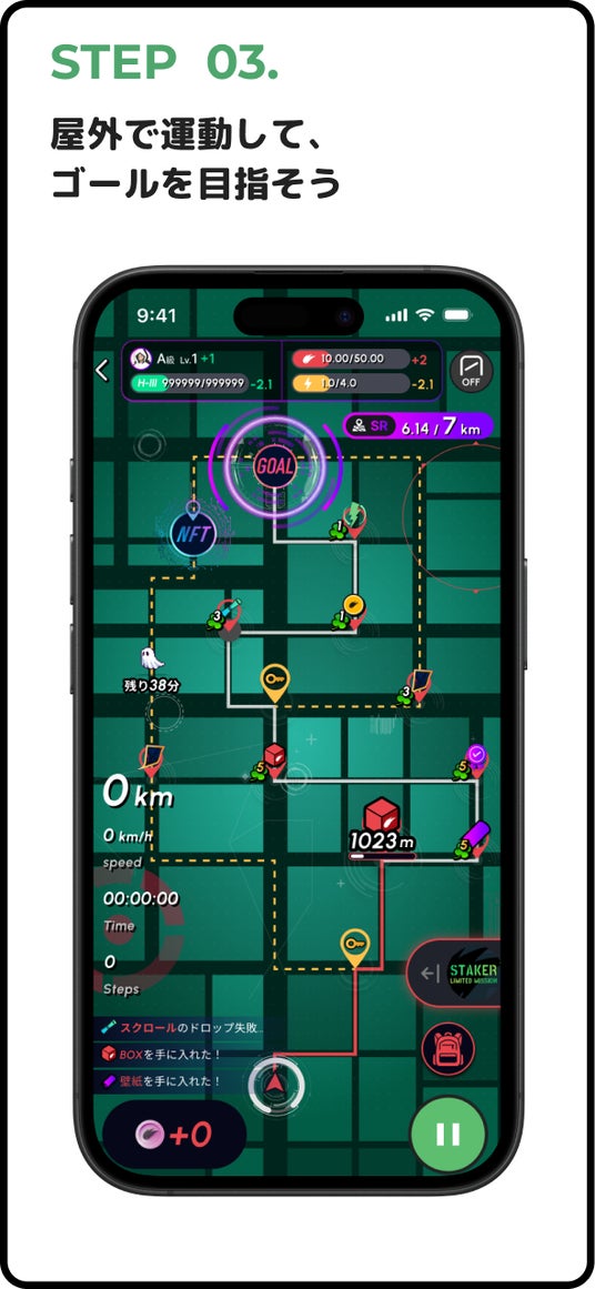 「HEALTHREE」は、ゲーミフィケーションと独自の報酬システムを組み合わせた新感覚のヘルスケアアプリです。ゲーム感覚で運動習慣が身につくだけでなく、初期課金や難しい設定なしで運動距離に応じて暗号資産がどんどん稼げる新しい体験を提供しています。今回のアップデートでは、一般的にブロックチェーン技術を活用したゲームでは暗号資産の購入が必要であるところ、誰もが無料で始められる新しいゲームシステムを導入しました。