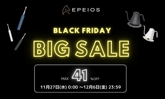 高品質で機能性の高く、心も豊かになるような製品を提案するライフソリューションブランド ”EPEIOS/エペイオス”を展開する株式会社EPEIOS JAPAN (所在地:東京都中央区、代表者:駒崎竹彦)は、2024年11月27日(水)より先行セールが開催される"Amazon ブラックフライデー"にて、ブランドのベストセラーモデルや年末年始のこの季節に大活躍する話題の製品などを中心に、合計25アイテムを最大41%オフとなる特別価格でご案内いたします。