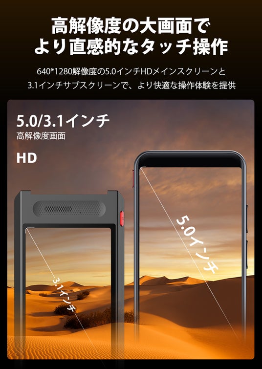 VORMORデュアルスクリーン翻訳機は、革命的なデザインを誇ります。取り外し可能な5.0インチのメインスクリーンと3.0インチのセカンダリースクリーンは、さまざまなシナリオに対応する柔軟性を提供します。