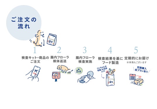 “うちの子”の腸内フローラを調べてつくるオーダーメイドフードのため、より効果的な健康をサポートいたします。