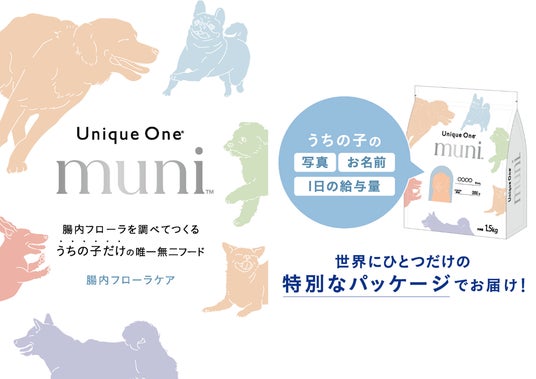 腸内フローラを調べてつくる“うちの子”だけの唯一無二フード「Unique One muni」を2024年11月22日にUnique One公式ECサイトにて発売開始いたします。