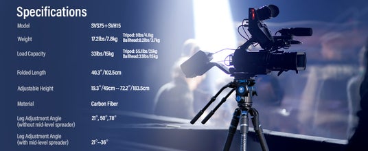SVS75 ラピッド システム ワンステップ高さ調整ビデオ三脚 (SVH15 ドラッグ コントロール ビデオ フルード ヘッドと 75mm ハーフボウル クイック リリース ハンドル付き) は 6 件の特許を所有しており、高画質ビデオ制作の分野向けの最も予算に優しいプロ仕様の三脚キットです。