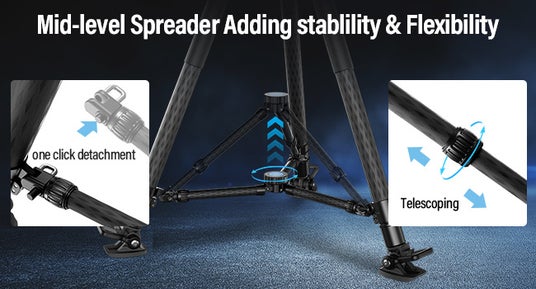 中レベルスプレッダー中間レベルのスプレッダーを追加すると、サポート システム全体を安定させることができます。スプレッダーの長さを伸縮して、ロック ノブで脚の角度を微調整できます。