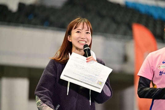 今回は、イベントMCとして長谷川朋加様(フリーアナウンサー)、ゲストとしてがんばれゆうすけ様(吉本興業所属)、佐野千晃様(モデル)、田口雅也様(元Honda陸上競技部所属)、森野麻美様(ランニングアドバイザー)、室伏杏花里様(モデル兼ランニングアドバイザー)、 鍵山光琉様(大学生市民ランナー)をご招待し、等々力陸上競技場にてトークショーやランニングを行いました。
