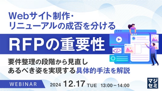 マジセミ株式会社は「Webサイト制作・リニューアルの成否を分けるRFPの重要性」というテーマのウェビナーを開催します。