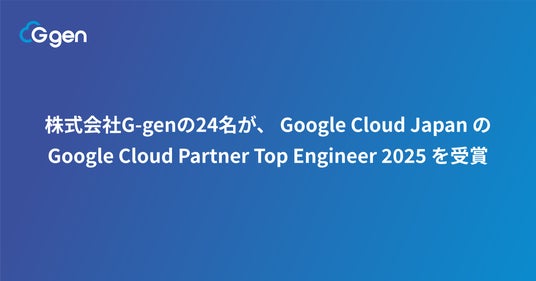 この度 株式会社G-gen(本社:東京都新宿区、代表取締役:羽柴孝、以下G-gen)は、 G-gen の24名が Google Cloud Japan が高い技術力を持ったエンジニアを表彰するプログラムである 「 Google Cloud Partner Top Engineer 2025 」に選出されたことをお知らせします。