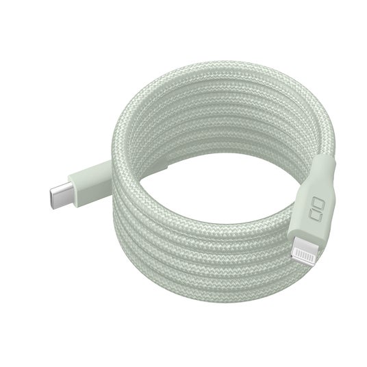 シリコンケーブル C to Lightningしなやかで絡まりづらいシリコン被覆を採用。急速充電対応。30000回の折り曲げテストをクリア。