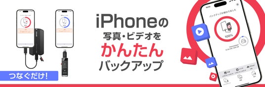 バッファローが提供する無料アプリ「写真バックアップ」はiPhone・iPadとSSDなどの外部USBストレージを接続し、アプリケーションを起動するだけで写真・ビデオをかんたんにバックアップできます。分かりやすい画面デザインとシンプルな操作性で、初めての方でも迷うことなくご利用いただけます。バックアップ対象は、端末内蔵ストレージの写真・ビデオはもちろん、iCloudフォトライブラリに保存されている写真・ビデオにも対応しており、本アプリケーションならまとめてバックアップが行えます。
