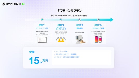 ”HYPE CAST AI”のサービス開始から6ヶ月で登録クリエイターの総フォロワー数が6,000万人突破を記念し、公式サイトからお問い合わせいただいた皆様限定で特別プランを期間限定で実施します。対象の商品やサービスにあった、タレントリストをレコメンドカードもご提供いたします。この機会に是非ご利用ください。