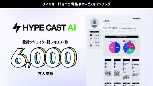 HYPE CAST AI、サービス開始から6ヶ月で登録クリエイターの総フォロワー数が6,000万人を突破