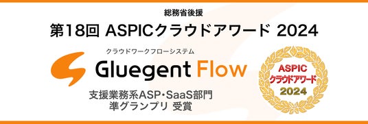 サイオステクノロジー、総務省後援「第18回ASPICクラウドアワード2024」で、クラウドワークフロー「Gluegent Flow」が支援業務系ASP・SaaS部門 準グランプリを受賞