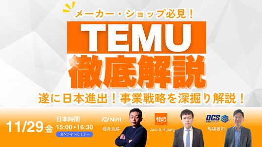 株式会社Nint(本社:東京都新宿区、代表取締役:吉野順子 以下、「Nint」)は、越境EC市場で急成長を遂げている注目のプラットフォーム「TEMU」の日本市場責任者と、越境EC物流の専門家を招いたセミナーを2024年11月29日(金)に開催いたします。今回のセミナーでは、TEMUの日本事業戦略や越境EC物流に焦点を当て、2025年に向けたEC事業戦略を考える皆様にとっては必見の内容となっております。