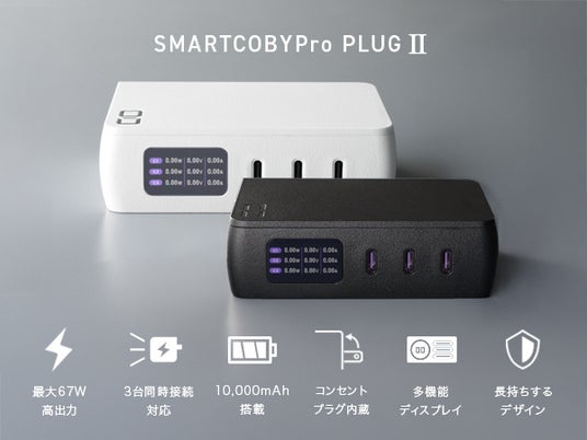 株式会社CIO(本社:大阪府守口市)は、コンセントにつなげば単ポート最大67WでノートPCを充電!”SMARTCOBY Pro PLUGII”をAmazon.co.jpにて10,800円(税込) にて販売を開始いたします。