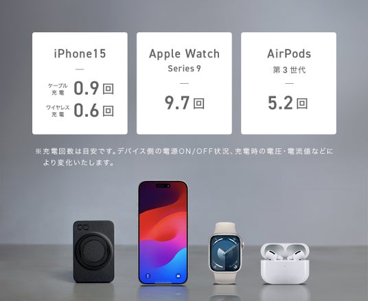 3種のAppleデバイスを必要な分、ちょうど良く充電出来る5,000mAhを搭載。