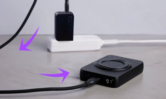 MagSafe対応のiPhone(12シリーズ以降)なら強力マグネットでピタッと吸着。そのままポンとカバンに入れて充電できます。