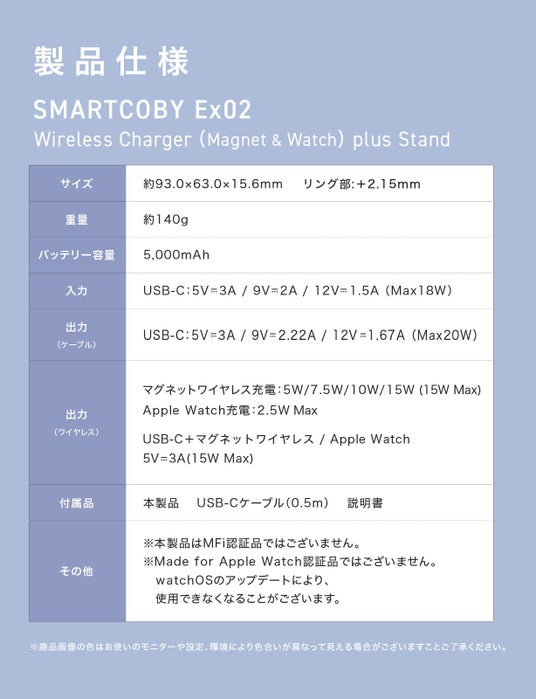 ・商品情報:「SMARTCOBY Ex02 Wireless Charger(Magnet & Watch) plus Stand」