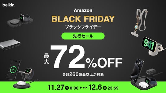 米カリフォルニア発、洗練されたデザインと快適なライフスタイル体験を提案し、グローバルで絶大な人気と市場シェアを誇るスマートフォン・PC関連製品ブランド「Belkin」の日本法人、ベルキン株式会社(以下Belkin、所在地:東京都中央区京橋)は、11月29日(金)~12月6日(金)にて開催されるAmazon ブラックフライデーにて、ワイヤレス充電器、iPhone 16対応保護フィルム、ドッキングステーションなどの最新製品を中心に、全260以上の製品を最大72%オフのセール価格にて販売いたします。