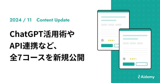 2024年11月は、業務効率化を図りたいビジネスパーソン向けに、ノーコードで始めるChatGPTの活用術やAPI連携でビジネスアプリを作成する方法、DX推進におけるセキュリティマネジメントについて学ぶコースや、フロントエンドシステム開発を体系的に学ぶコースなど、全7コースを新規公開いたしました。