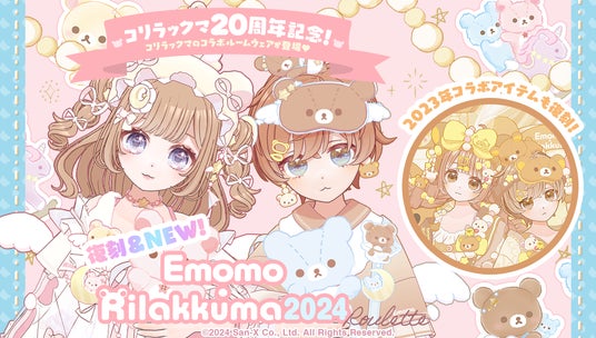 今回のコラボでは、2023年のコラボレーションの際にご好評いただいたリラックマモチーフの衣装やインテリアに加え、コリラックマ20周年を記念したコラボルームウェアも新登場!