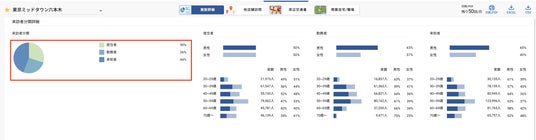 時間や場所ごとに、どの年代・性別の人が何人居るのかを分析し、様々なマーケティング戦略に活かせるツールです。 NTTドコモが提供するアプリケーションの利用者より、許諾を得た上で送信される携帯電話の位置情報と属性データの情報から、店舗の運営改善や新規出店に大きく貢献します。