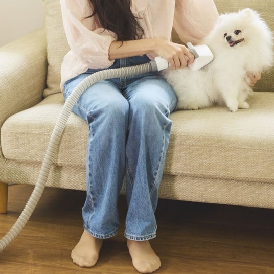 トリミングとグルーミングは身だしなみを整えるだけではなく、ワンちゃん・ネコちゃんの皮膚や被毛の健康維持をサポートします。ブラッシング時に舞う被毛や、抜け毛をしっかりキャッチし吸引することで部屋もキレイに保ちます。大きな音に敏感な子には弱モードで、しっかりグルーミングしたいときは強モードで使用するなど、シーンや性格に合わせて吸引力を3段階で調整できます。本体は約1.7kgの軽量設計のため、片手で持ち運ぶことが可能です。