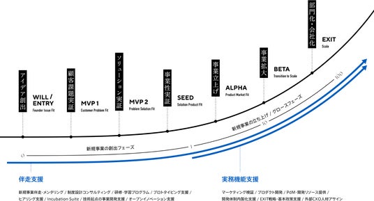 また、オープンイノベーションを加速させる事業会社のための協業支援サービスUNIDGEや、新規事業や人材育成を通じて地域活性化を支援するアルファドライブ高知・琉球アルファドライブ、イノベーター向けのメディア・クリエイティブを手がけるAmbitionsといったグループ会社の事業も通じて、新規事業開発やイノベーション創出に尽力していきます。