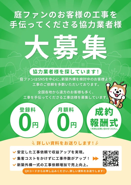 庭ファンは、お客様と協力業者様双方にとってメリットのあるサービスを提供することで、外構工事業界全体の活性化に貢献してまいります。