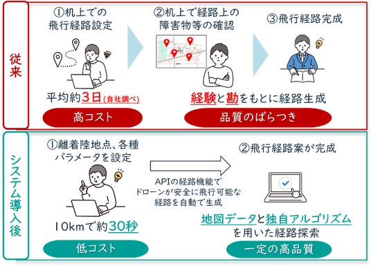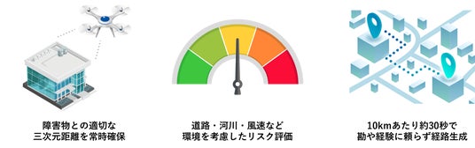 ドローンの安全な飛行経路 “空の道”作成を支援「ドローンルート検索機能」「ドローンルート評価機能」搭載のAPIを提供開始~飛行経路を自動生成!国際規格に準拠した世界初のサービス~