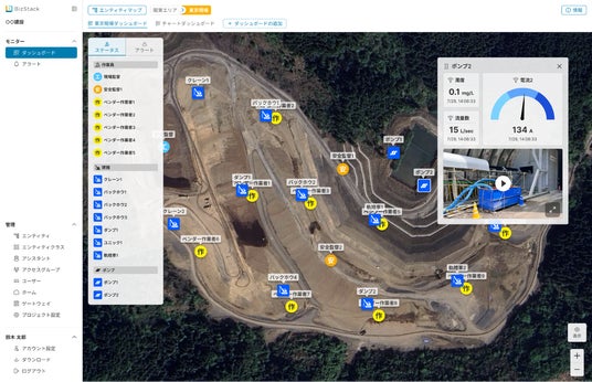 屋外位置情報機能と他のセンサーデータを一元表示できるBizStackのダッシュボード(イメージ図)