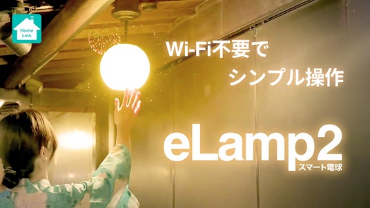 「eLamp2」はBLE(Bluetooth Low Energy)通信に対応し、インターネット環境がなくてもスマートフォンのHomeLinkアプリと直接接続できます。