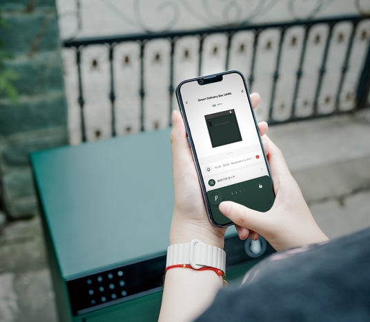 本製品はスマホアプリ連動仕様です。スマートフォン用の専用アプリ(※1)にてBluetooth接続することにより、宅配ボックスの扉の解錠操作ができます。専用アプリで解錠するため、鍵の紛失の心配がなくなります。また、利用履歴の確認に加えて、アプリの登録メンバー間で解錠用の暗証番号を共有できるので、宅配業者が不在連絡票に暗証番号を書く必要がなくなります。不在票から暗証番号を第三者に知られる心配がなく、盗難対策にもつながります。