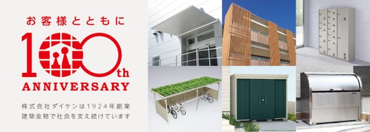 今年で創業100周年のダイケンは、宅配ボックスや駐輪場関連製品(駐輪ラック、駐輪場屋根)、ゴミ収集庫などエクステリア関連製品の製造・販売を行っており、今後も製品開発に力をいれていきます。