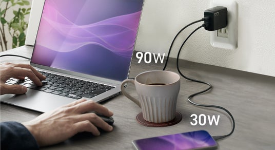 ハイエンドノートPCだけでなく、お手持ちのスマホも一緒に急速充電できます。ノートPC+αの充電が可能になるため、かつてないほどスマートな充電環境が作り上げられます。
