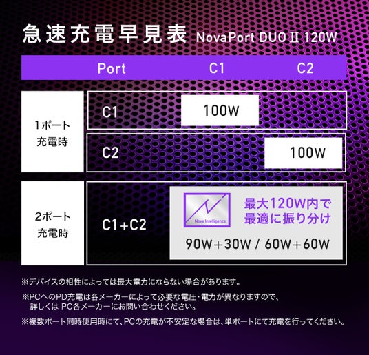 高出力合計120W・小型・軽量充電器・単ポート100W・自動振り分け機能"NovaIntelligence"
