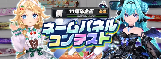 11月27日(水)メンテナンス後より、11種年を記念した「ネームパネルコンテスト」を開催します。ゲーム内のプレイヤー情報が簡易的に表示されるネームパネル。思い思いのデザインで自分だけのネームパネルを応募しよう!