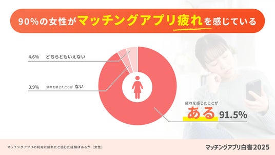 コンテンツ事業を行う企業の調査(*3)によると、「マッチングアプリの利用に疲れた」と答えた女性は約9割となりました。