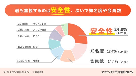 マッチングアプリを選ぶ際に重視するポイントは、「安全性」が最多でした。