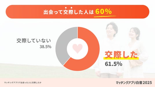 マッチングアプリで出会った相手と交際に発展したのは約6割でした。