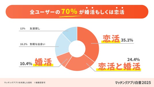 マッチングアプリを利用した目的は、恋人探しの「恋活」が最多でした。