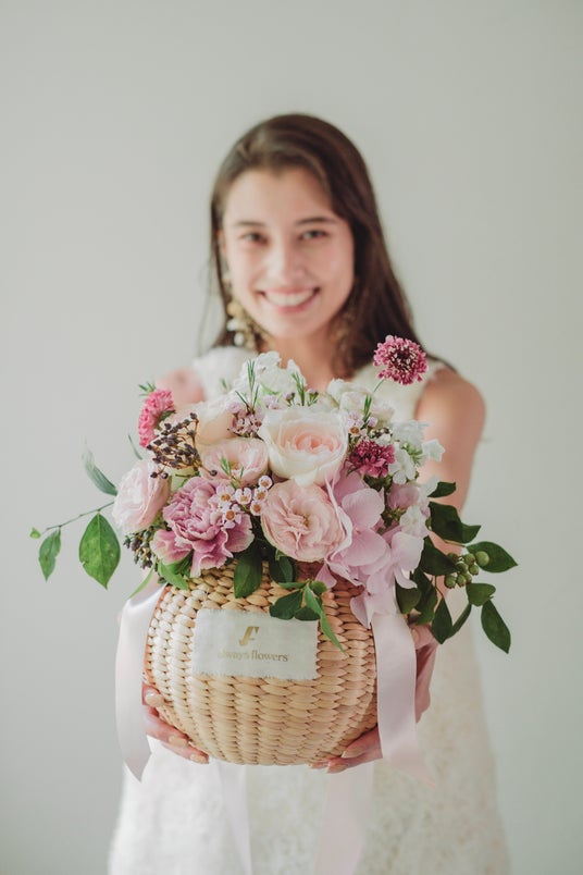 オルフラが初めてリリースしたのは、バッグをモチーフにした”カゴバッグフラワー”で、肩にかけて持ったり写真を撮れる他にはないアイテム。