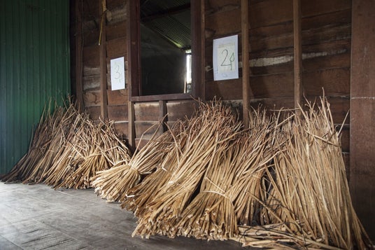 ウォーターヒヤシンスは湖から採取して、乾燥させるところから始まります。